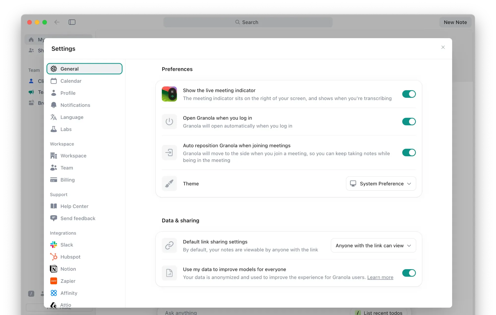 Granola takes a privacy-first approach that feels refreshing in a world where everything is shared a little too often. All your notes are private by default. Both individual users and admins can control sharing, so there's flexibility across different organizational needs too.
